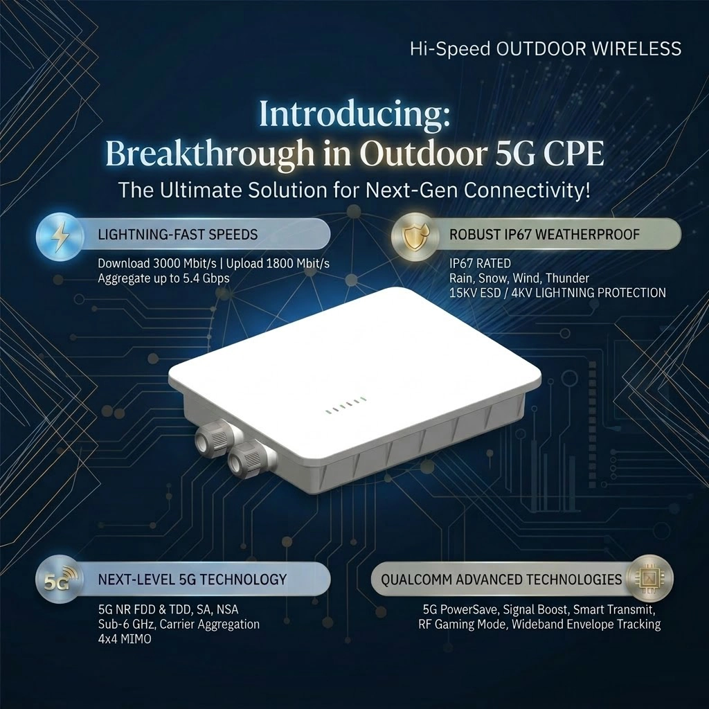 5G CPE with Dual-band 4x4 MIMO 802.11ax Access Point.