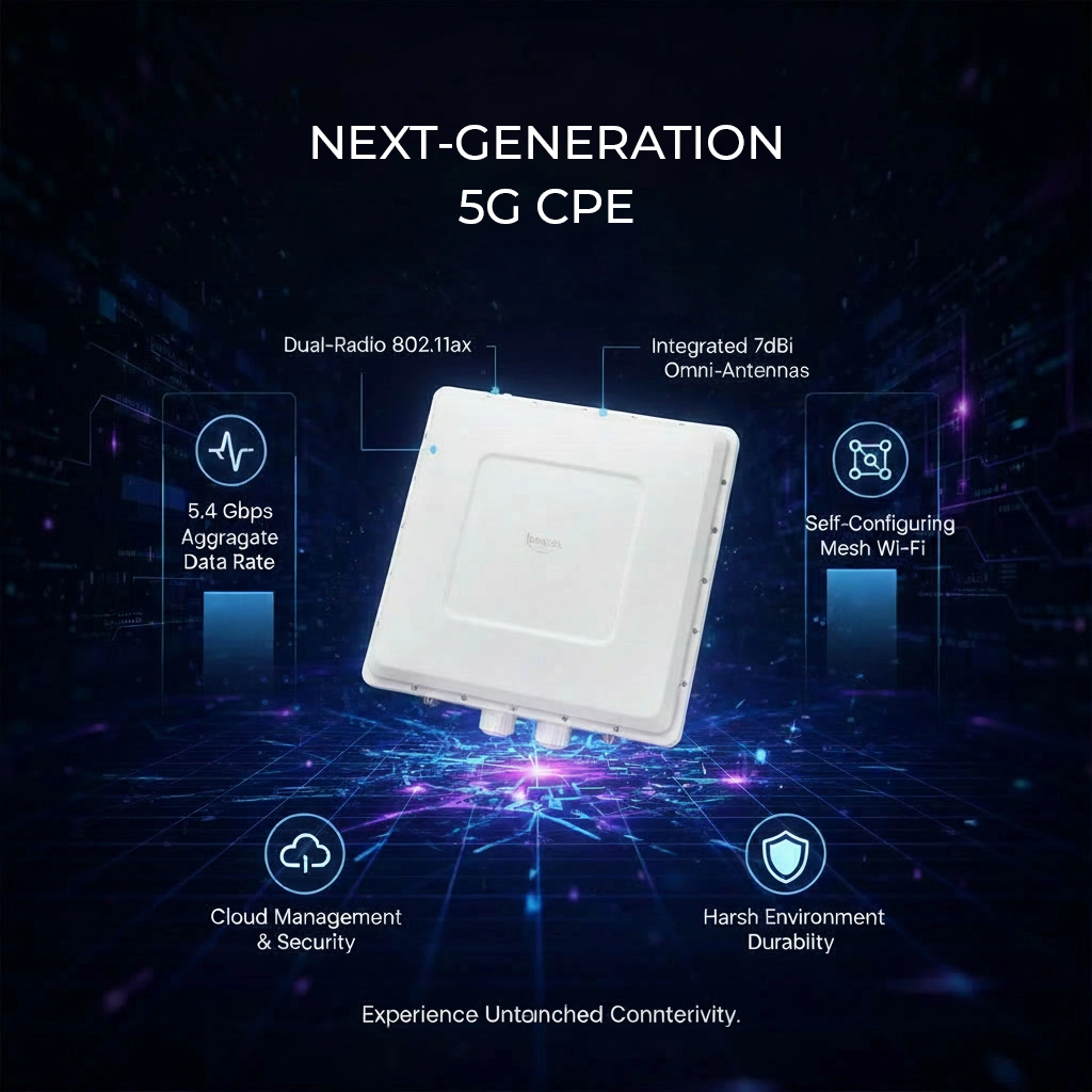 5G CPE with Dual-band 4x4 MIMO 802.11ax Access Point.